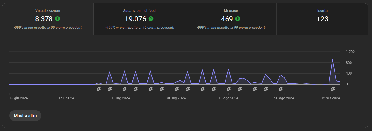 Durante la pausa estiva il canale YouTube non è stato fermo, ho pubblicato una serie di shorts, 2 a settimana, che potessero fungere da teaser per i video fatti durante l’anno e quindi spingere le visualizzazioni sul canale e un nuovo potenziale pubblico.